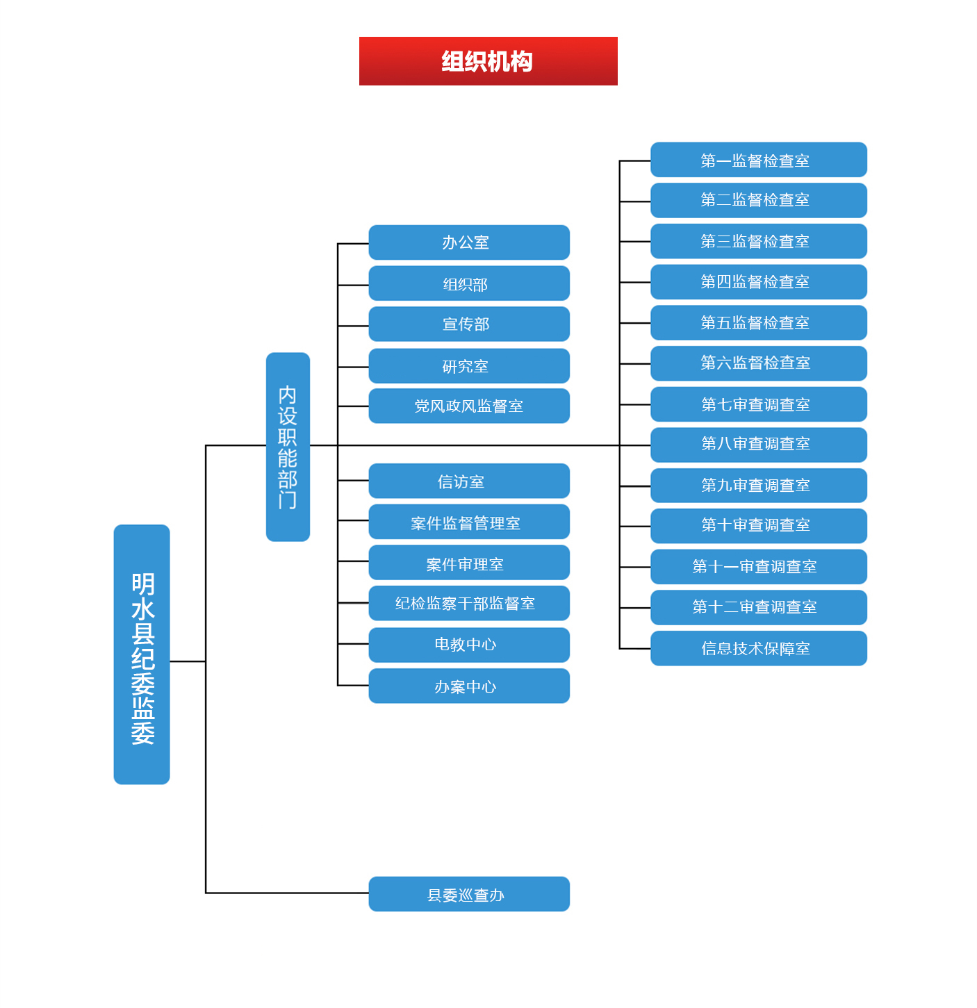中共明水县纪律检查委员会监察委员会机关内设机构、职能配置及直属事业单位中共明水县纪律检查委员会(以下简称县纪委)由县党的代表大会选举产生,是党内监督的专责机关,县纪委受县委和市纪委的双重领导。明水县监察委员会(以下简称县监委)由县人民代表大会选举产生,是行使国家监察职能的专责机关,县监委对县人民代表大会及其常务委员会和市监察委员会负责,并接受其监督。县纪委与县监委合署办公,实行一套工作机构、两个机关名称,履行党的纪律检查和国家监察两项职责,对县委全面负责。