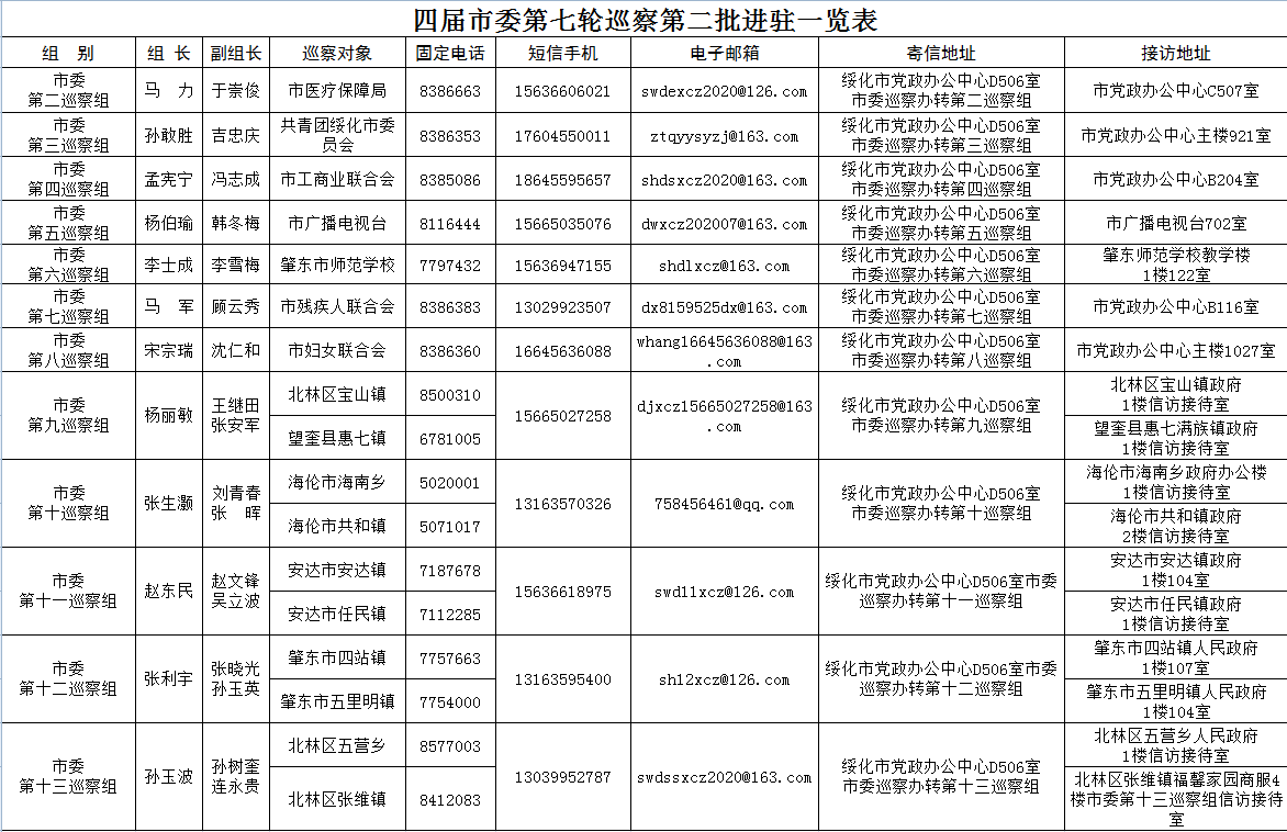 7月14日,市委第二至第十三巡察组分别进驻市医保局、团市委、市工商联、市广播电视台、肇东师范学校、市残联、市妇联,望奎县惠七镇,北林区宝山镇,海伦市共和镇、海南乡,安达市任民镇、安达镇,肇东市五里明镇、四站镇,北林区张维镇、五营乡。